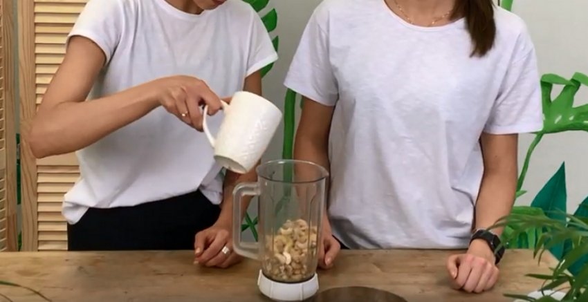Попередньо замочені горішки кеш'ю, розтоплене кокосове масло та інші інгредієнти помістити в блендер і подрібнити до однорідності.![]()