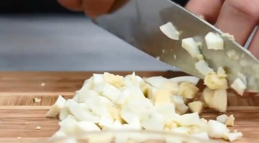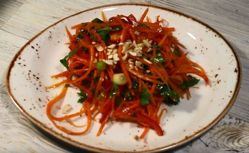 Перемішати, викласти в тарілку для подачі і посипати зверху порубаними ножем горіхами.![]()