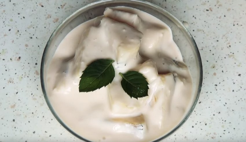 Викласти салат у піалки. Можна прикрасити листям м'яти та мигдальними пелюстками.![]()