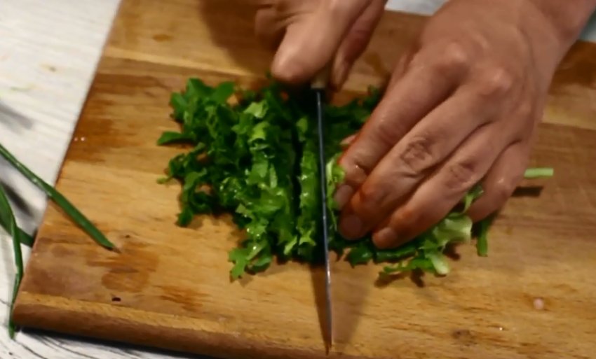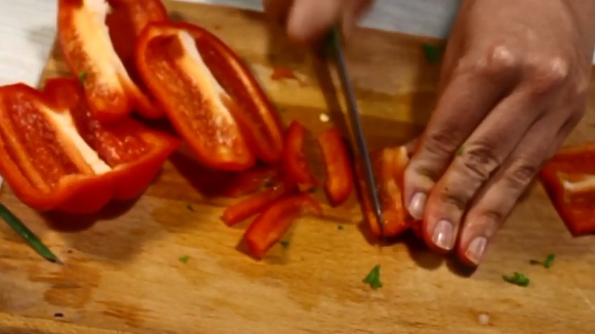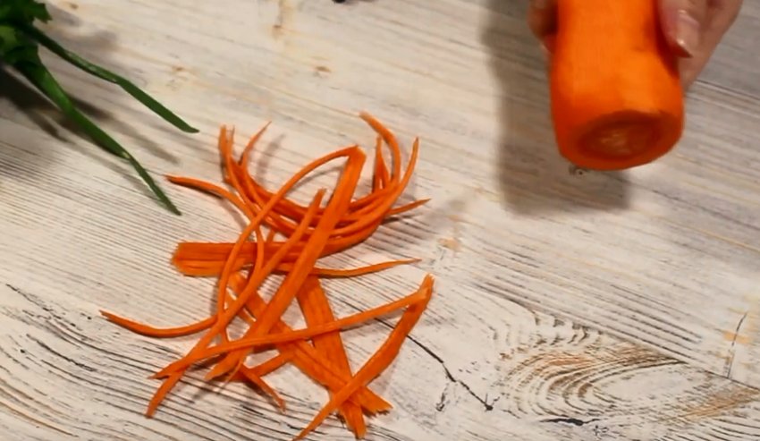 - Часник, перець і коріандр помити, почистити і нарізати дрібною соломкою.