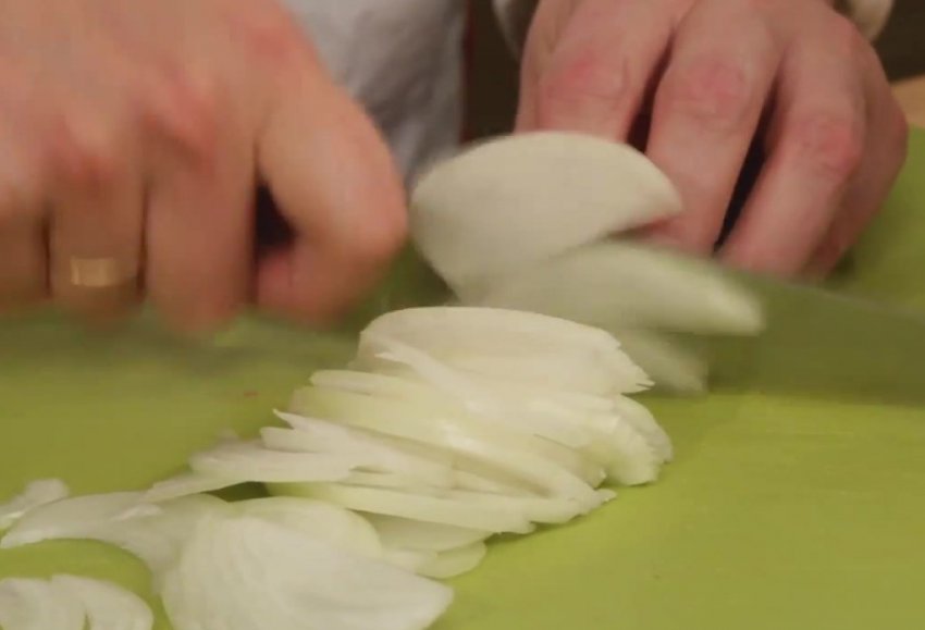- Очистіть, помийте і поріжте цибулю невеликими кубиками.