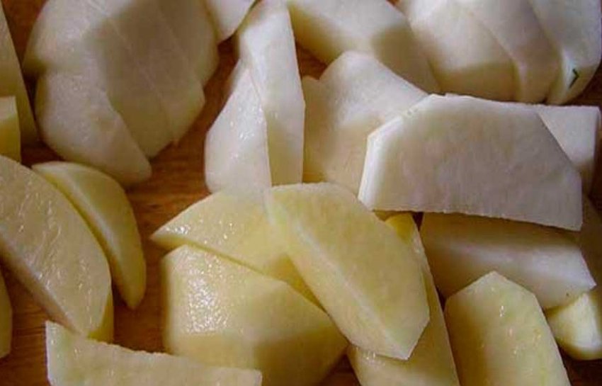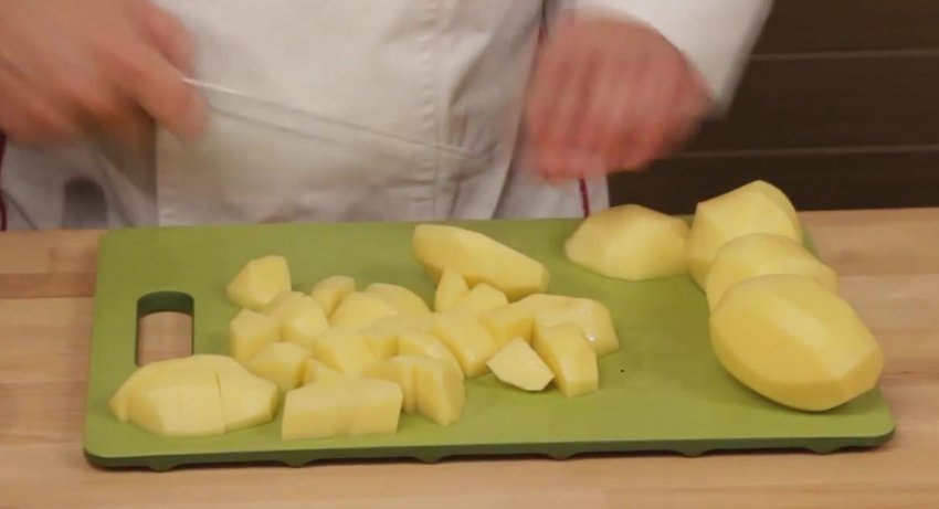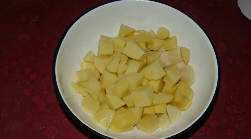 - Позбавте картоплю від шкірки, помийте і подрібніть великими кубиками (зі стороною 1 см).