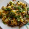 Посоліть, поперчіть страву, влийте трохи води і додайте посічену зелень для поліпшення смакових характеристик тушкованої картоплі.![]()