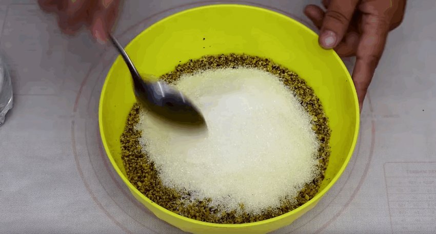Для начинки горіхи подрібнюють, але не в борошно, мають залишитися невеликі шматочки.![]()