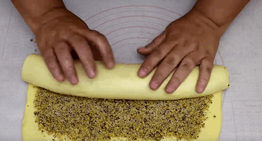 Викласти начинку й акуратно загорнути в рулет.![]()