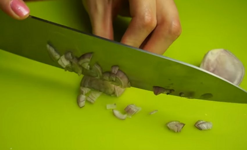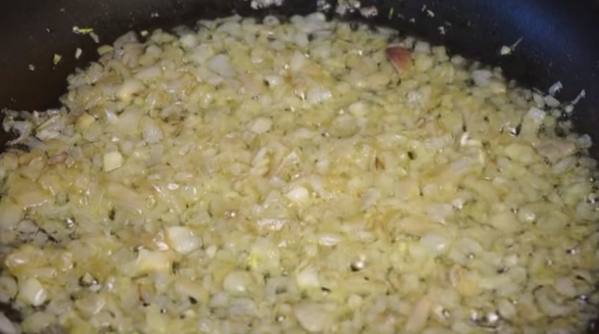 Після цього потрібно обсмажити на ньому цибулю. Вогонь має бути слабким. Смажте цибулю до золотистого кольору.![]()