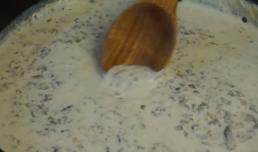 У рецепті використовуються вершки. За необхідності можете їх замінити сметаною (15%). Якщо ж ви не вживаєте молочні продукти, використовуйте майонез. Його відсоток жирності має бути не менше 60%. Під час вибору вершків, масла та інших молочних продуктів, уважно стежте за їхнім терміном придатності.