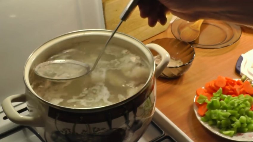 закипання вогонь зменшити і варити м'ясо 25-30 хвилин. Періодично потрібно знімати піну.![]()