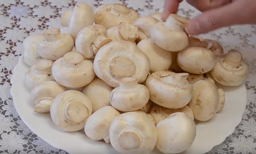 Для запікання потрібно вибирати тільки свіжі гриби. Шапки та ніжки в них мають бути пружними, не мати пошкоджень і темних плям. Уважно дивіться, щоб шкірка мала білий або злегка бежевий, однорідний відтінок. У молодих свіжих грибів книжечка вирізняється ніжно-рожевим кольором, якщо їх зрізали давно, або вже "постаріли", пластинки будуть коричневими.