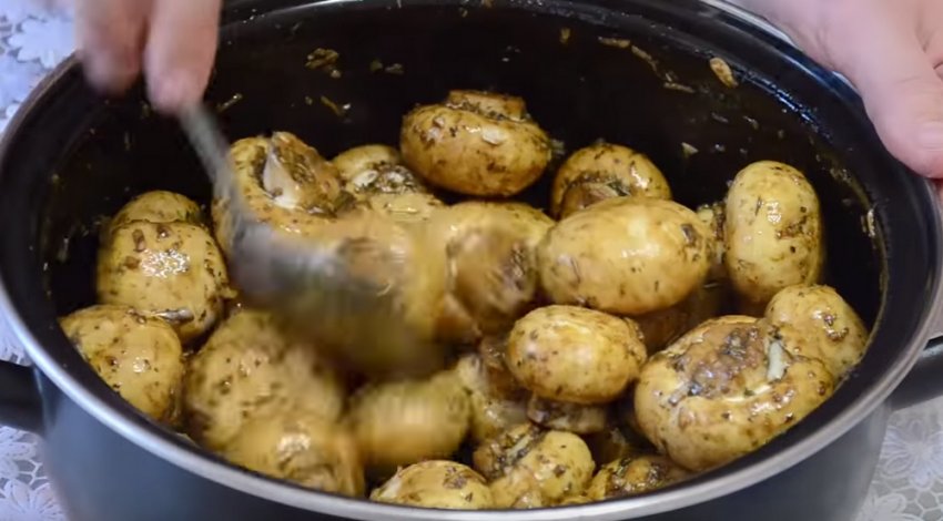 Такий рецепт передбачає вживання страви гарячою або після повного охолодження. В обох варіантах - це буде кулінарний шедевр, який "відлетить" першим як з буденного, так і зі святкового столу. До того ж гриби не потрібно смажити на сковорідці, що робить продукт більш корисним.