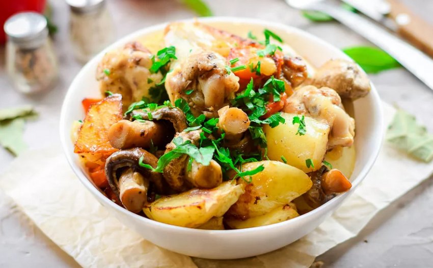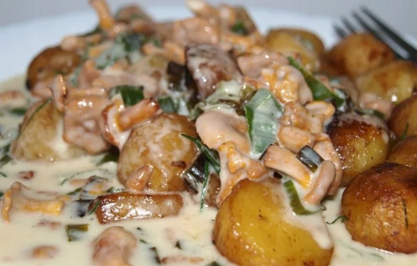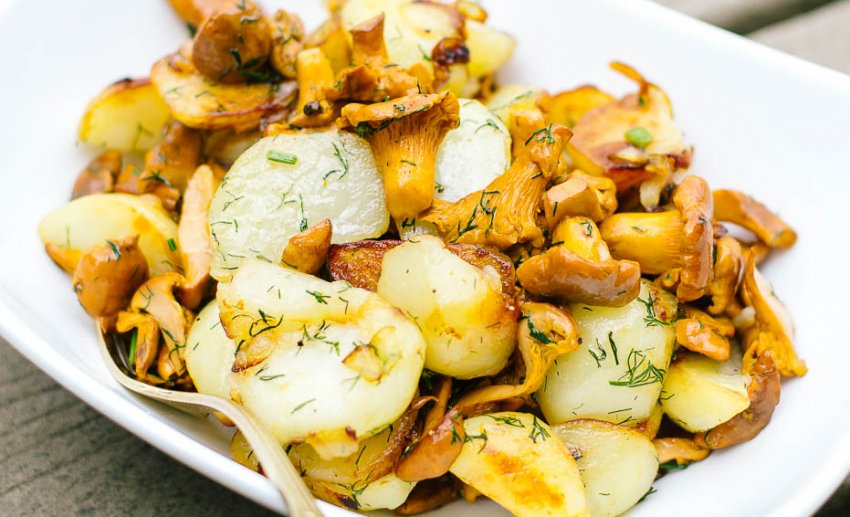 Всіма улюблені гриби лисички чудово поєднуються з картоплею, в результаті чого виходить дуже смачна ароматна страва. Існує маса рецептів картоплі, тушкованої або смаженої з грибами. До того ж помітно спростити процес приготування можна за допомогою мультиварки.