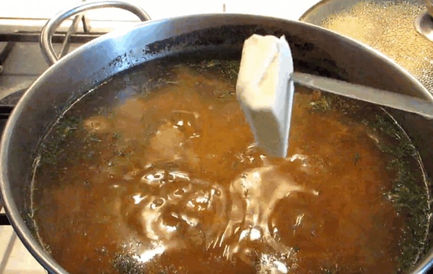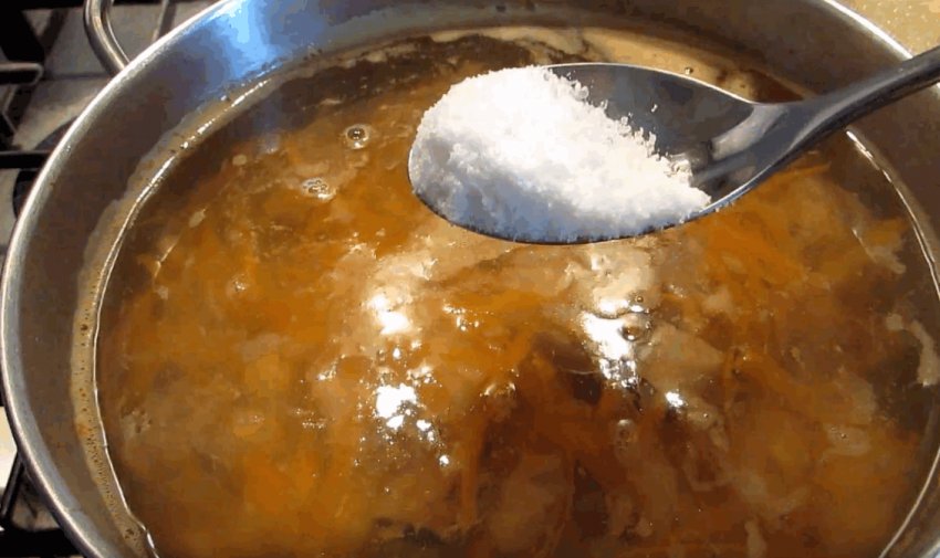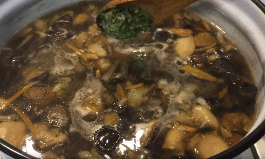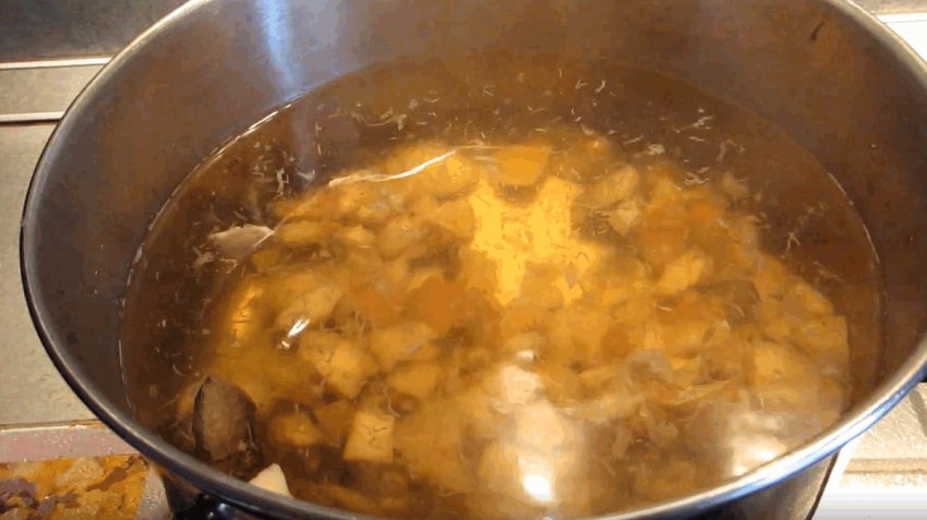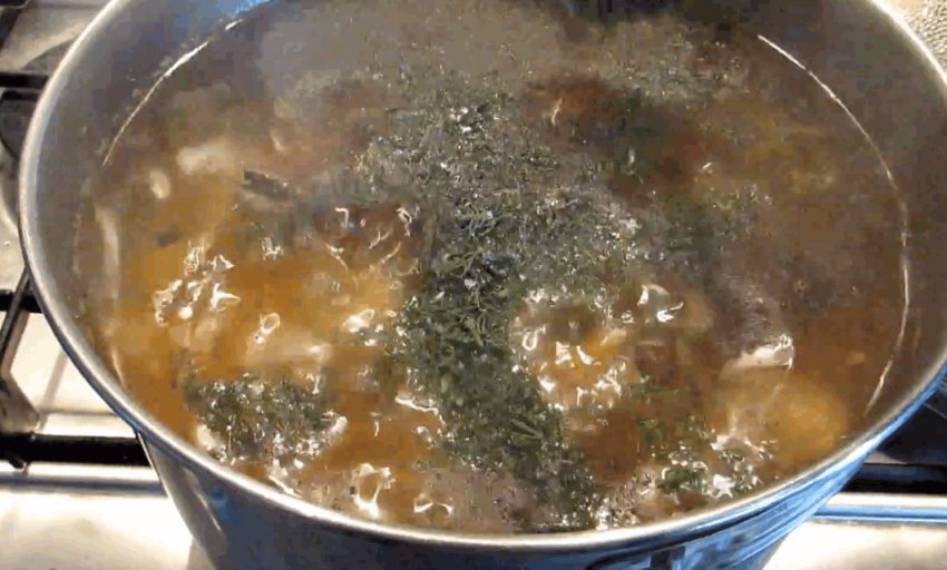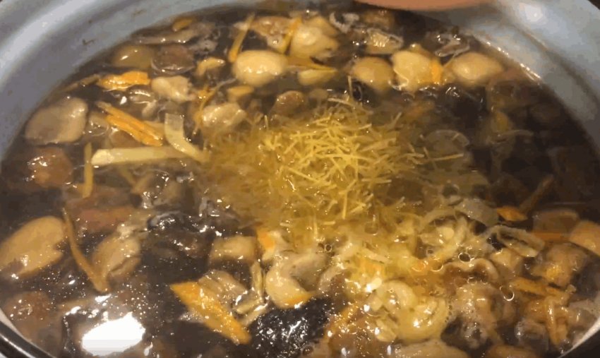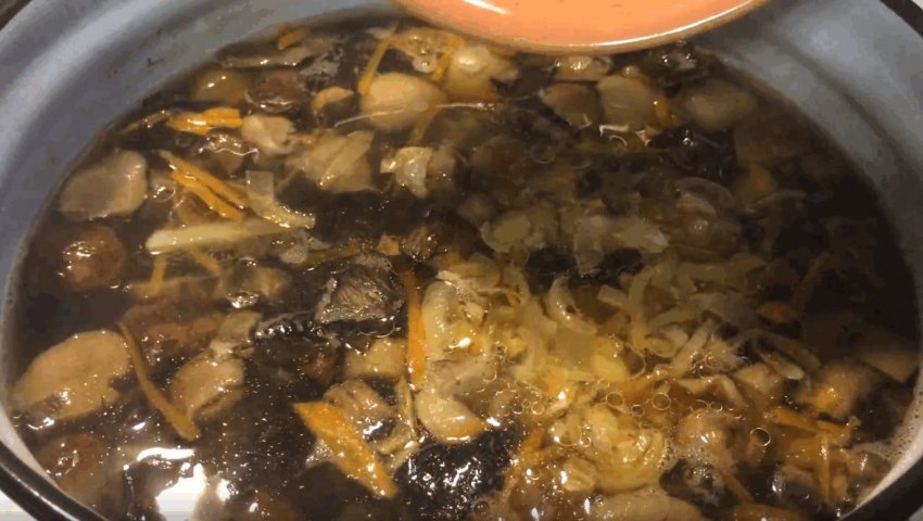 - У киплячий суп покласти набряклі підосичники, влити настій, у якому замочували гриби.