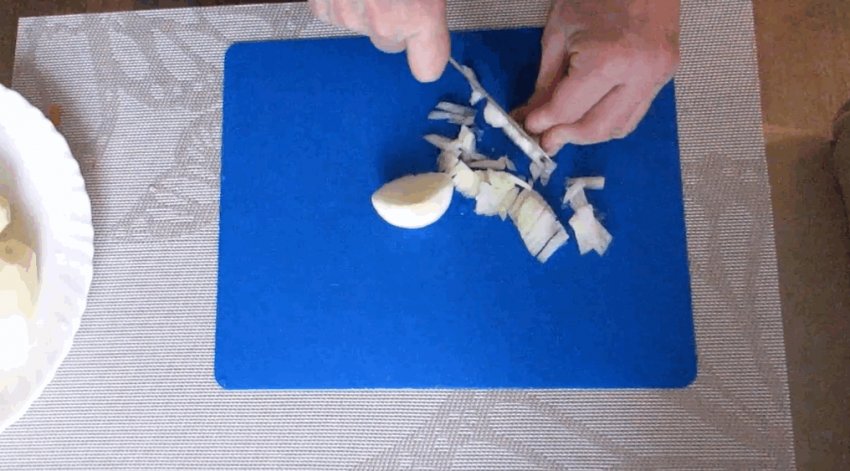 Очищену миту цибулю нашаткувати дрібними кубиками.![]()