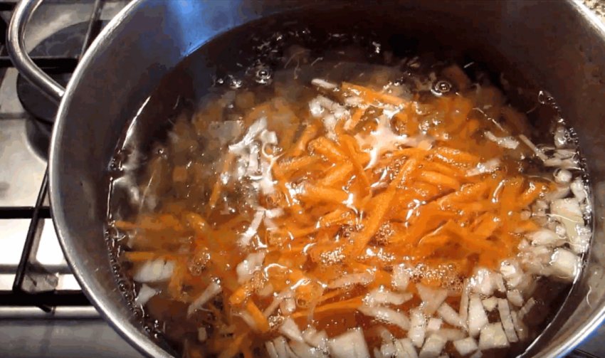 Коли гриби зваряться, додати, цибулю і моркву. Збільшити нагрівання, дати закипіти.![]()