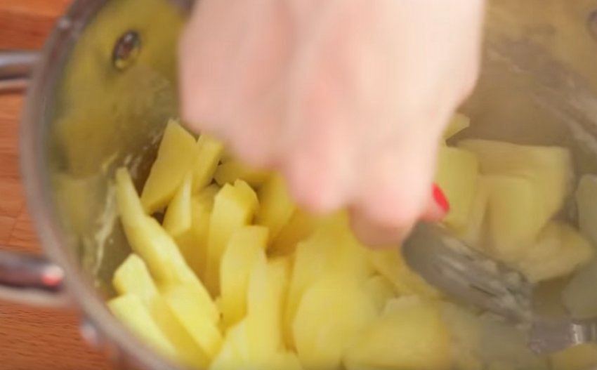 Картоплю очистити, крупно порізати і варити до готовності.![]()