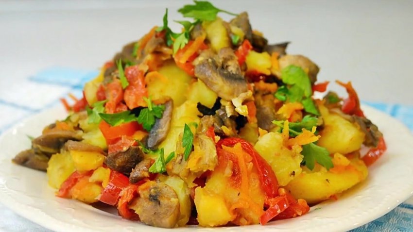 Рецепт овочевого рагу з печерицямиВидео-рецепт: Рецепт овочевого рагу з печерицями