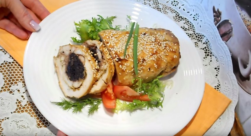Курячий рулет з волоськими горіхами та чорносливомВидео-рецепт: Курячий рулет з волоськими горіхами та чорносливом
