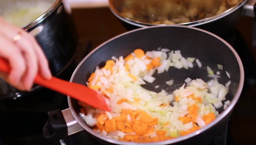 Моркву подрібніть за допомогою терки або дрібно наріжте ножем. Додайте її до цибулі та обсмажте.![]()