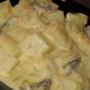 - Скласти курку у форму на шар картоплі. Залити сумішшю, збитою в блендері.