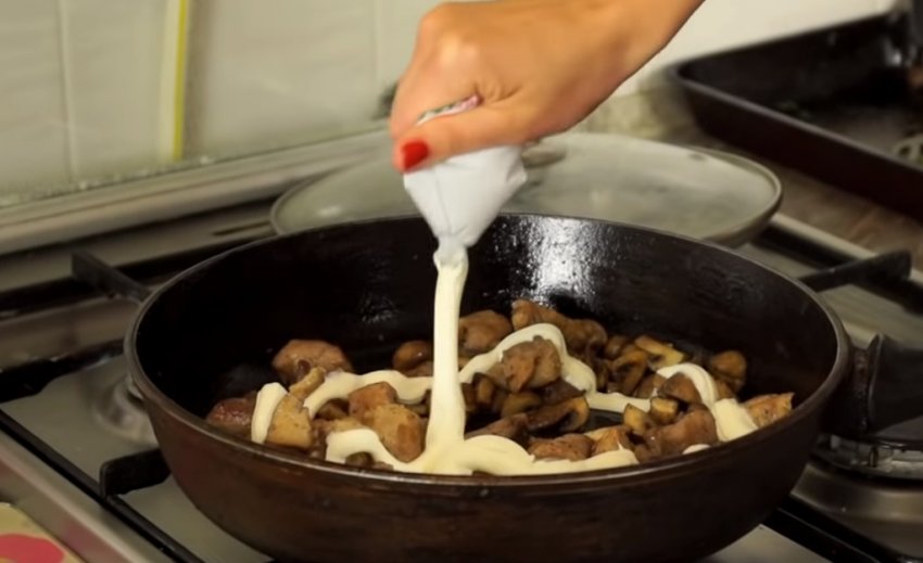 Рецепти приготування м'яса в сметанному соусі з печерицями