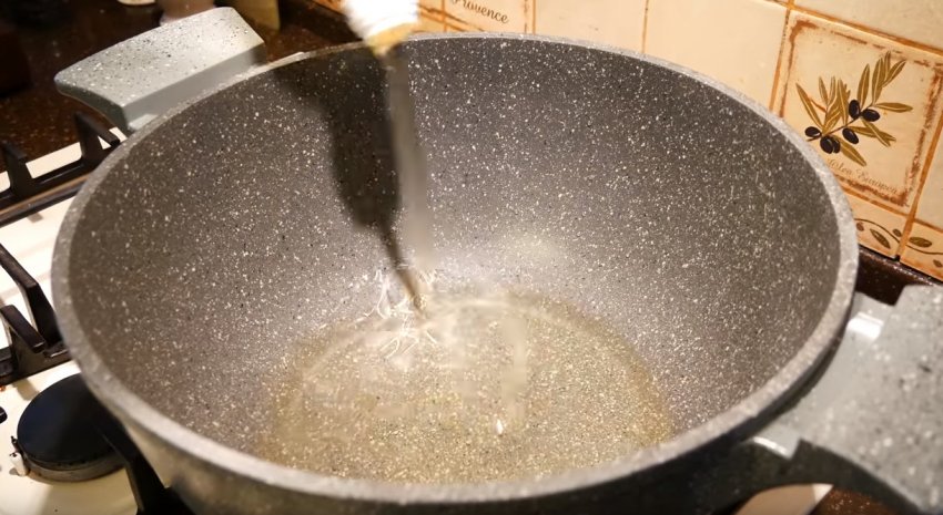 Розігріти соняшникову олію в казанку. Розігрівати потрібно до закипання олії.![]()
