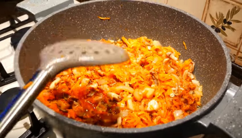 Продовжувати обсмажувати до стану готовності грибів, моркви та цибулі.![]()