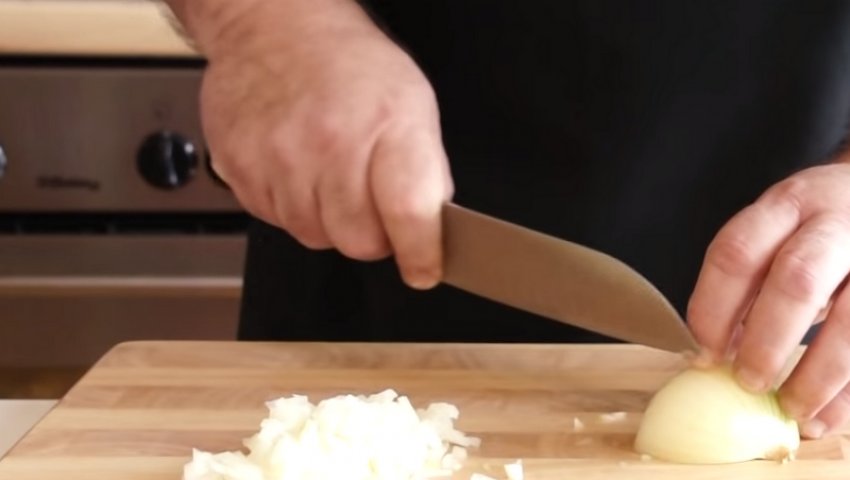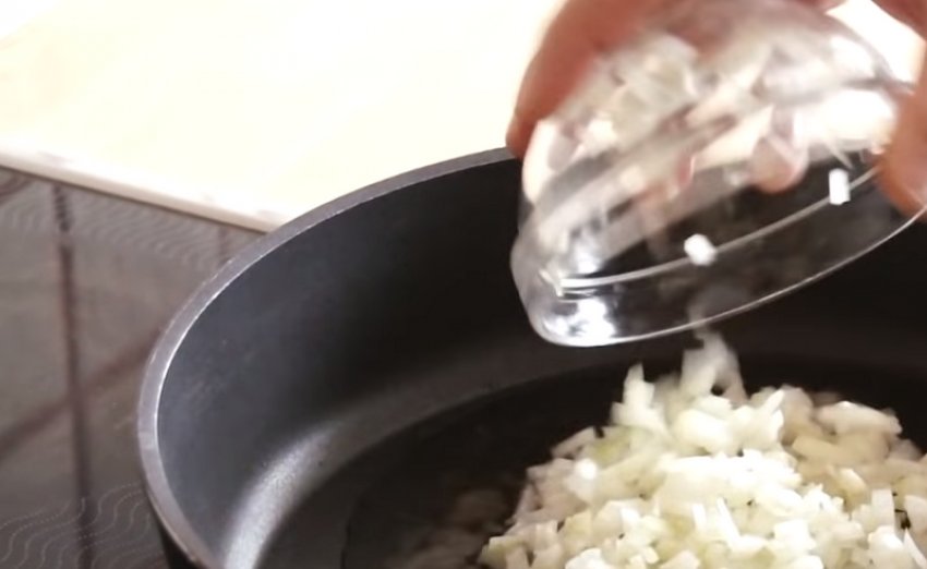 Висипати в сковорідку цибулю й обсмажити до прозорості.![]()