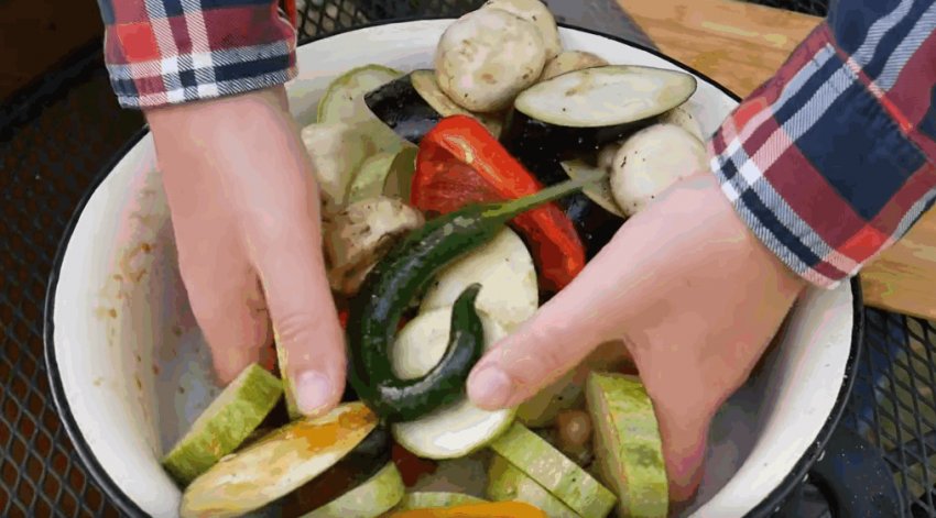За бажання можна доповнити майбутню тарілку-гриль й іншими вогнищевими овочами, оптимальним варіантом серед яких буде болгарський перець, цибуля, кабачки, баклажани та інші соковиті плоди. Зрозуміло, що всі складові мають бути свіжими та чистими, тому перед тим, як готувати, їх слід добре помити.