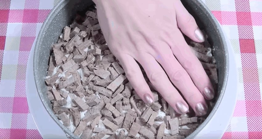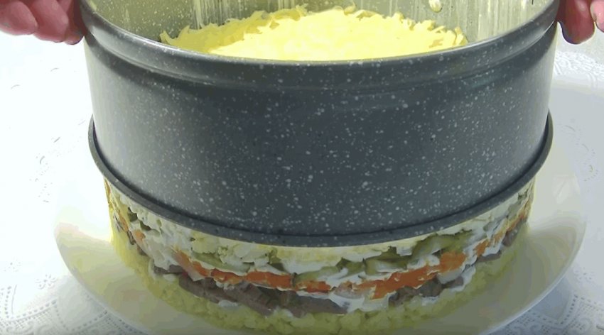 Після закінчення цього терміну салат витягується з холодильника і звільняється від форми.![]()