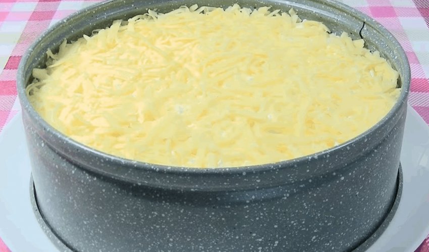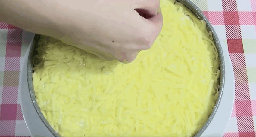 На ще один майонезний прошарок насипається тертий сир.![]()