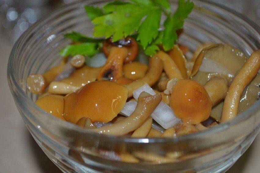 - Таким чином, перемежовуючи шари опеньків шарами спецій, заповнити ємність.