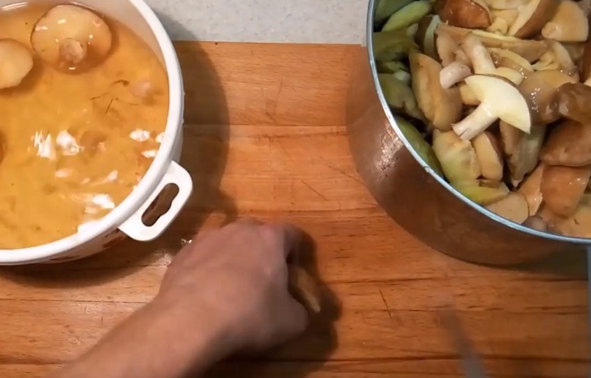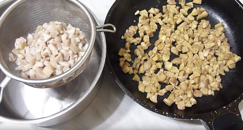 випарюванні гриби слід помістити на суху пательню та дочекатися, коли вони почнуть виділяти сік. Після того як випарується вся вода, їх можна знімати з плити.![]()