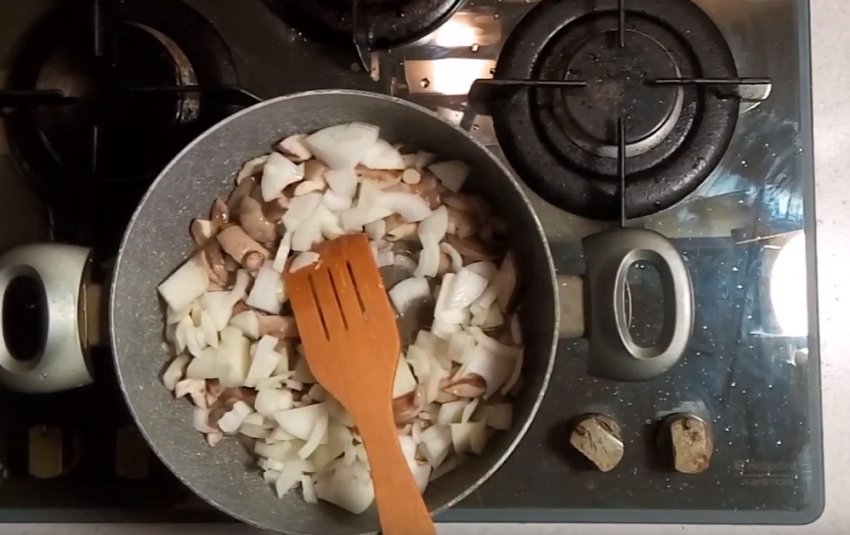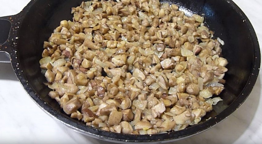 в сковороду гриби. Якщо необхідно, підсолити. Смажити до повної готовності цибулі.![]()