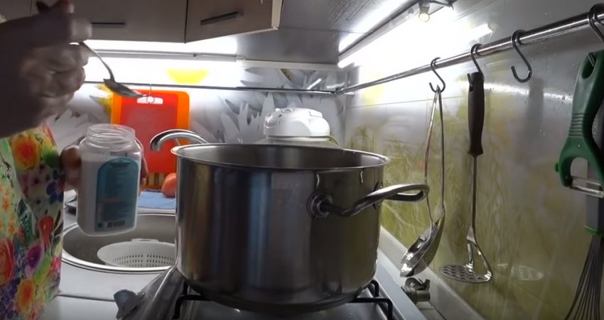 маринад: у воду помістити сіль, цукор, перець, лавровий лист, порізаний часник, закип'ятити.![]()