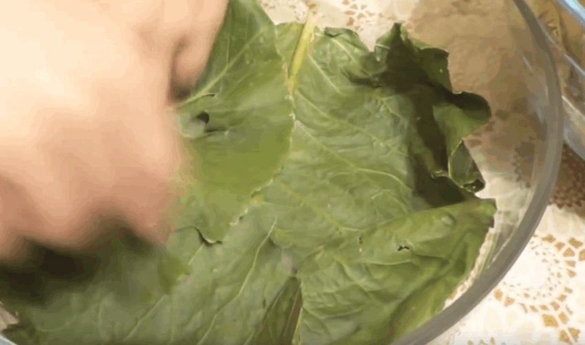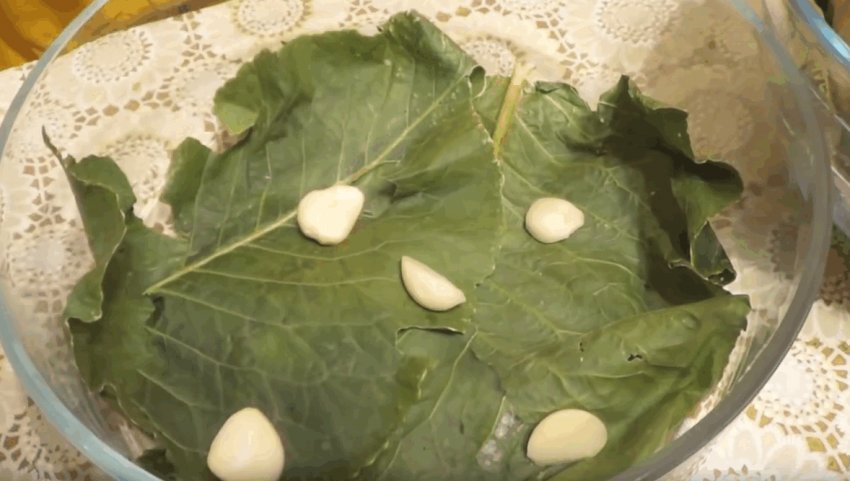 Приготувати широку ємність. Викласти на її дно все листя хрону.![]()