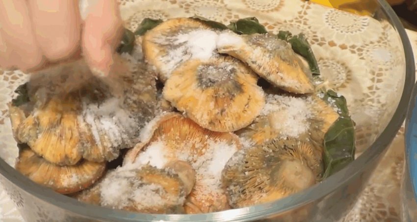 Для соління залишити гриби в холодному місці приблизно на 2 тижні для засолювання. Після цього продукт перекладають у скляну банку і тримають там, де завжди холодно (холодильник або льох).![]()