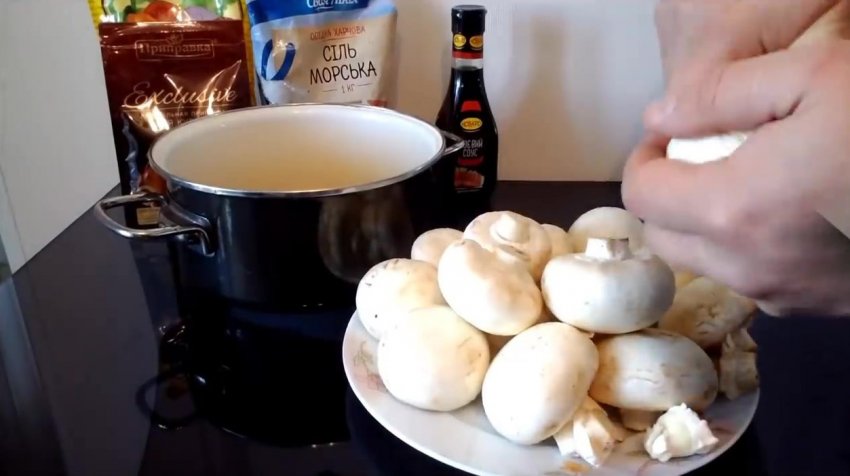 Основний інгредієнт рецепта - це сам гриб. Під час вибору печериць насамперед звертайте увагу на колір: він має бути повністю білим або злегка бежевим. Темні вкраплення свідчать про те, що продукт зберігався в неправильних умовах, через що перезрів і стане жорстким після термальної обробки.