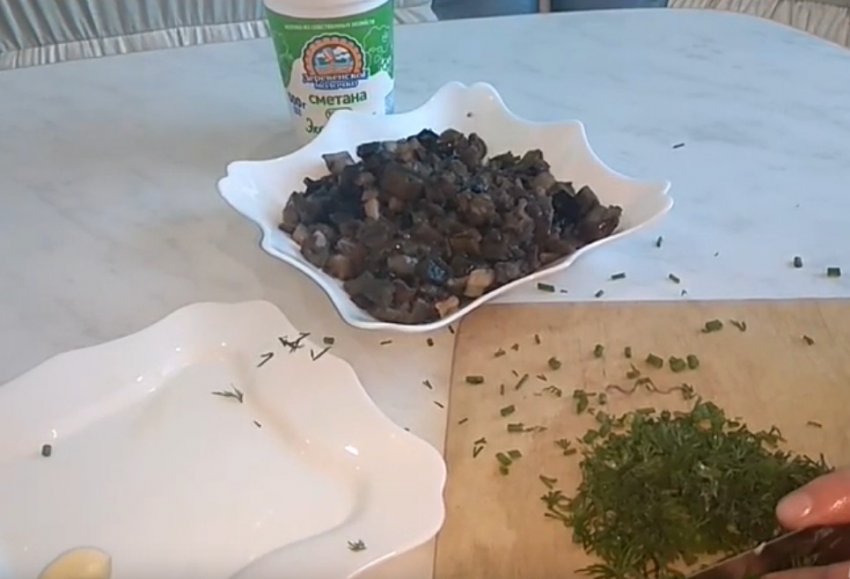 Очистити і порізати тонкими кільцями часник. Порубати кріп.![]()