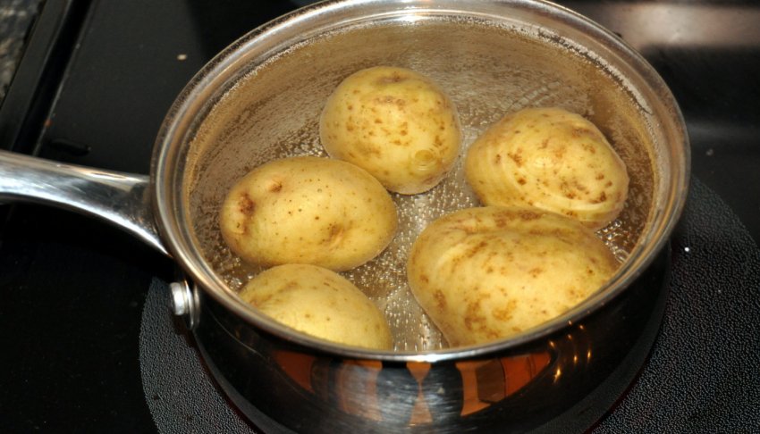 Картоплю відварити у воді з додаванням солі до напівготового стану.![]()