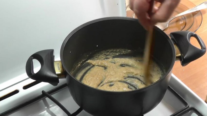 Вершкове масло розтопити в сотейнику, додати 2 ст. л. борошна. Обсмажити 2 хвилини.![]()