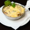 - Додайте в чашу натертий сир і рівномірно розподіливши його по поверхні цибулево-грибної суміші, влийте вершки.