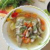 Курячий супчик із гливи, картоплею та консервованим зеленим горошком