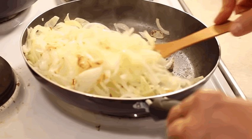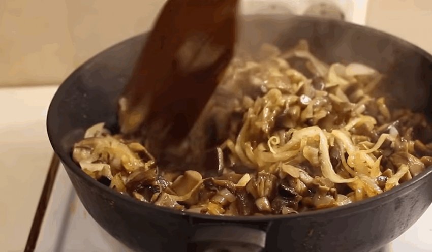 Після того як усі інгредієнти підсмажаться до необхідного стану, їх треба змішати, посолити, додати спеції, перемішати і прожарити на помірному вогні 2-3 хвилини.![]()