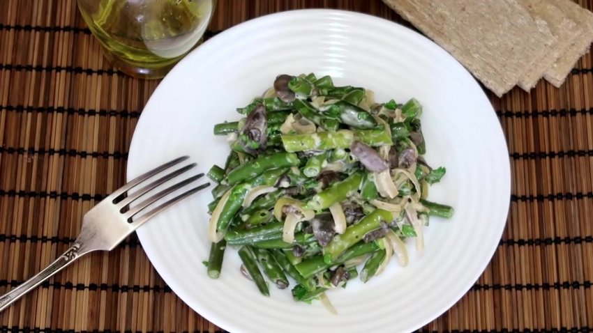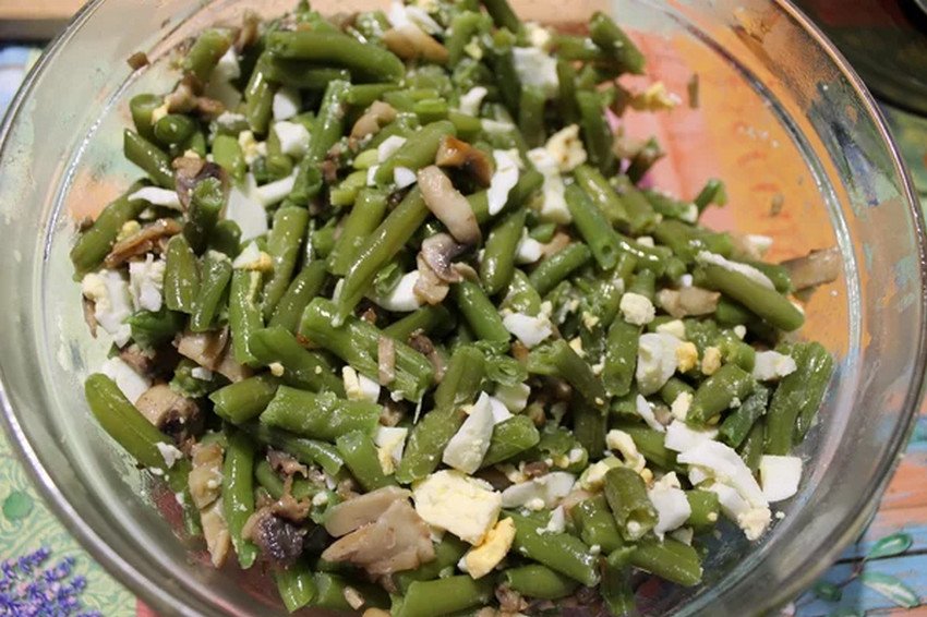 Оскільки квасоля і печериці не вживаються в сирому вигляді, всі рецепти передбачають варіння і смаження головних інгредієнтів. Але винагородою за труди стануть чудовий смак і привабливий зовнішній вигляд салату.
