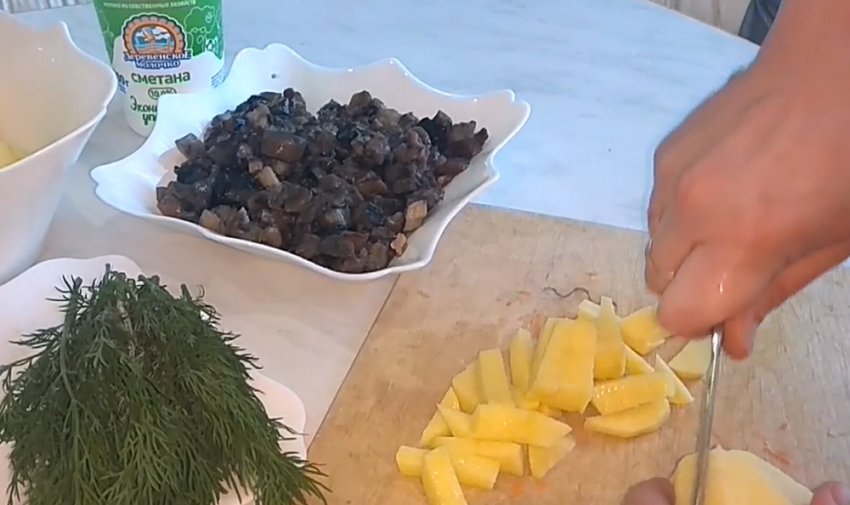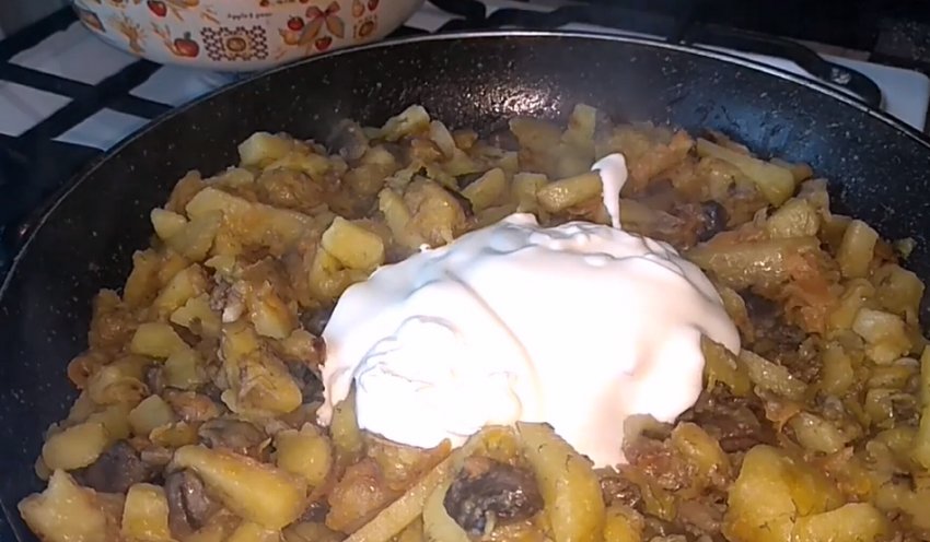 Рецепт смаженої картоплі з грибами та сметаноюВидео-рецепт: Рецепт смаженої картоплі з грибами та сметаною
