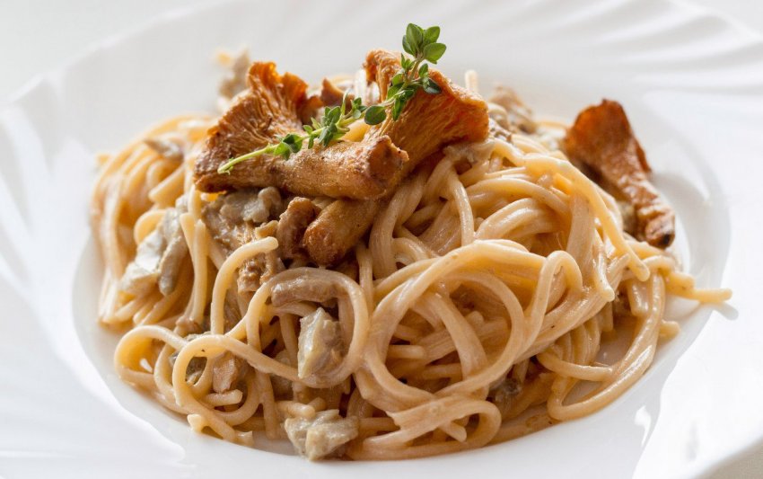 Рецепт приготування спагеті з лисичками у вершковому соусі