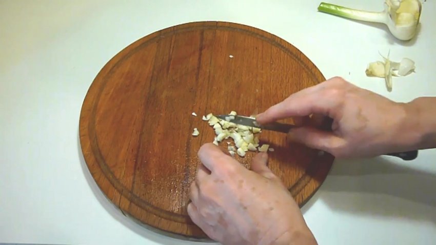 нарізати часник.![]()