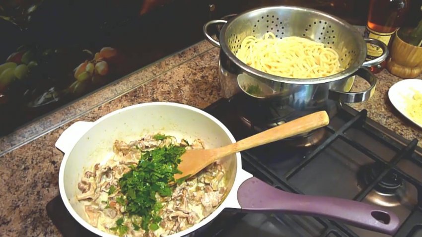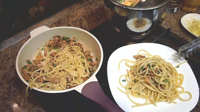 Рецепт приготування спагеті з лисичками у вершковому соусі Видео-рецепт: Рецепт приготування спагеті з лисичками у вершковому соусі