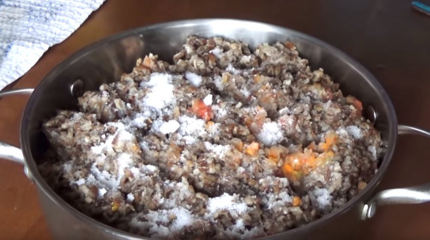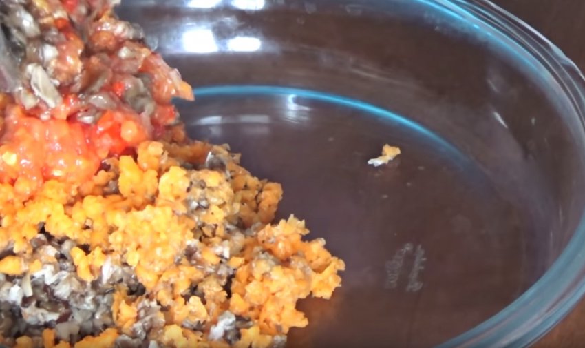 Варені та проціджені опеньки прокрутити через м'ясорубку разом із помідорами, морквою та цибулею.![]()