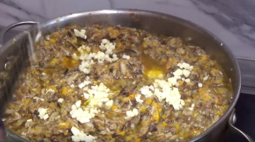 За 10 хвилин до закінчення приготування, додати подрібнений часник.![]()